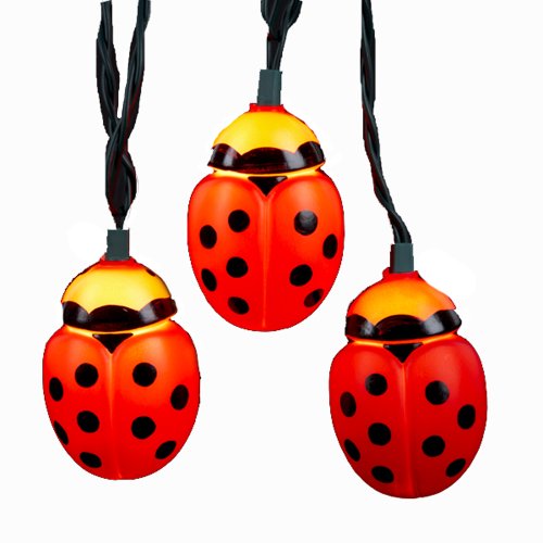 Ten total bulb covers shaped as ladybugs.Has a 30 inch lead wire.Uses 12V 0.08A incandescent bulbs.Has 12 inch spacing between lights.For indoor/outdoor use..