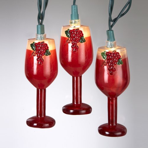 Kurt Adler Indoor/Outdoor 10-Light Wine Glass Light Set Feature