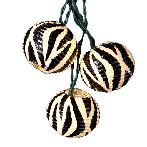 Kurt Adler UL 10-Light 3-Inch White Lantern with Black Stripes Light Set Feature