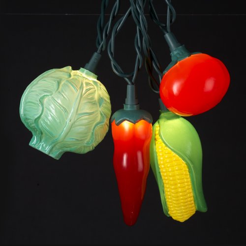 Set of 10 vegetable lights.For indoor and outdoor use.Uses 12v 0.08a clear incandesent bulbs..