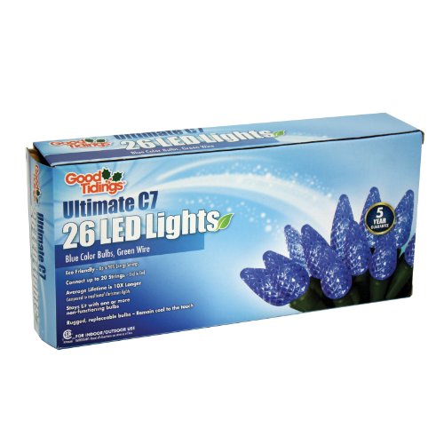 Rugged, replaceable bulbs will stay lit with one or more nonfunctional bulbs and stay cool to the touch.Average lifetime is ten times longer than traditional lights.Set of 25 blue diamond-cut led lights with up to 90-percent energy savings..