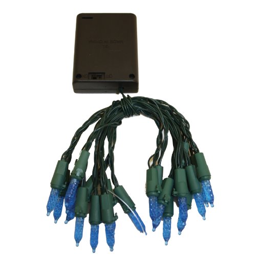 Convenient battery pack is easy to access and small enough to easily hide Battery operated set of 20 blue led lights Festive green wire
